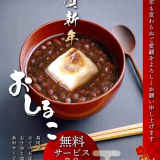2026年1月1日~3日おしるこ全員プレゼント 2026年1月1日~3日 期間中全てのお客様にお汁粉と銘茶を無料サービスします 2...