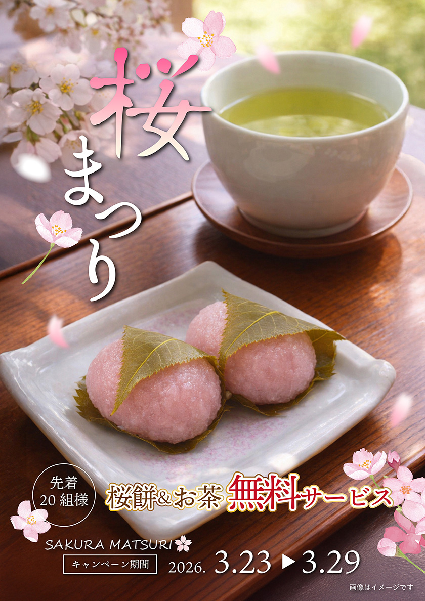 2026年3月23日~29日 桜まつり 桜餅&お茶を無料サービス