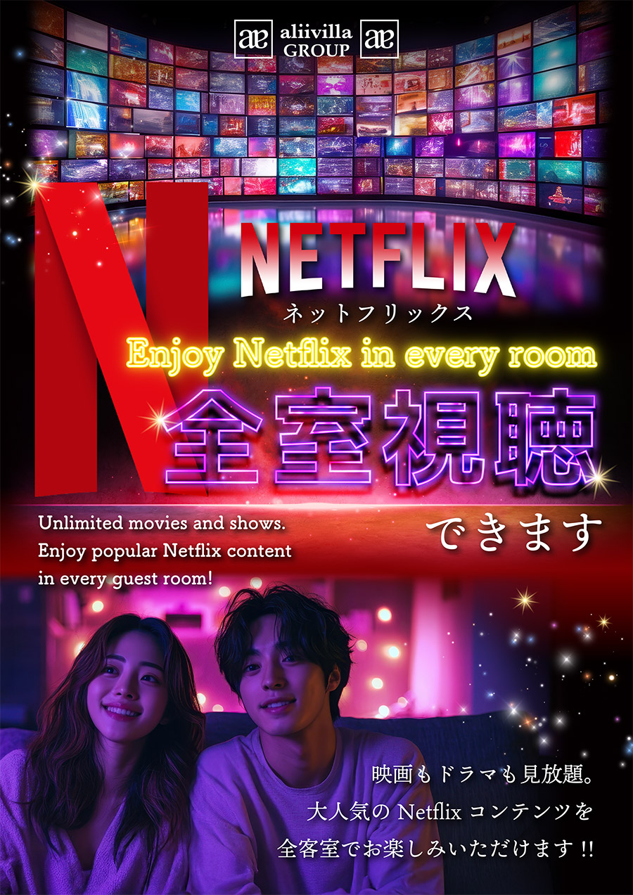 映画もドラマも見放題。大人気のNetflixコンテンツを全客室でお楽しみいただけます!!